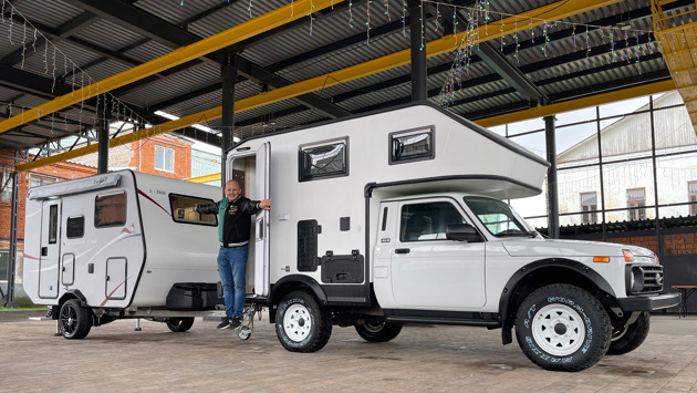 При этом наша альтернатива рынку недвижимости может еще и добраться до любой точки страны. Ведь в основе получившейся «квартиры» классическая Lada Niva Legend с дополнительными жилым модулем, а компанию ей составил новейший жилой прицеп Лиса. Вот такая реальная новинка этого лета для автомобилистов и без уже надоевшего клейма Made in China. При этом ходовая часть Лады даже оборудована пневмоподвеской, так что на ходу это совсем другой автомобиль. Каково жить и ездить на таком автопоезде? На все вопросы ответит новое видео.