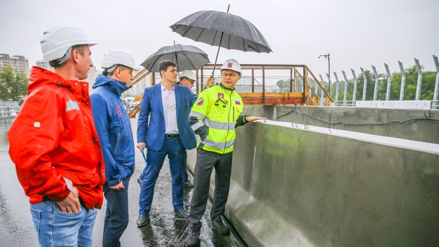 Мост протяженностью 300 метров фактически уже готов, его строительная готовность оценивается в 85 процентов. Основные конструкции смонтированы, сейчас ставят барьерные ограждения, приступают к благоустройству. Рафик Загрутдинов уверен, что в сентябре можно будет открыть движение.