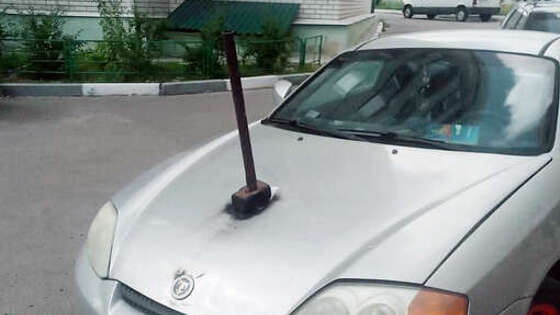Автовладелец из Воронежа приварил кувалду к капоту своей машины выпуска. Об этом сообщает "TV Губерния". Иномарку с кувалдой на капоте местные жители заметили во дворе дома N31 по улице Шукшина. Пользователи соцсетей предположили, что кто-то приварил кувалду к капоту, потому что им не понравилось, как водитель припарковался. Впрочем, по данным издания, кувалду приварил сам автовладелец. В ГУ МВД по области сообщили, что в полицию по данному инциденту никто не обращался. Проверка "Газеты.Ru" показала, что нынешнему владельцу Hyundai Tuscani принадлежит с 2021 года, автомобиль был выпущен в 2001 году. Ранее воронежцы неоднократно замечали эту машину на улицах города, тогда кувалды на ней не было.