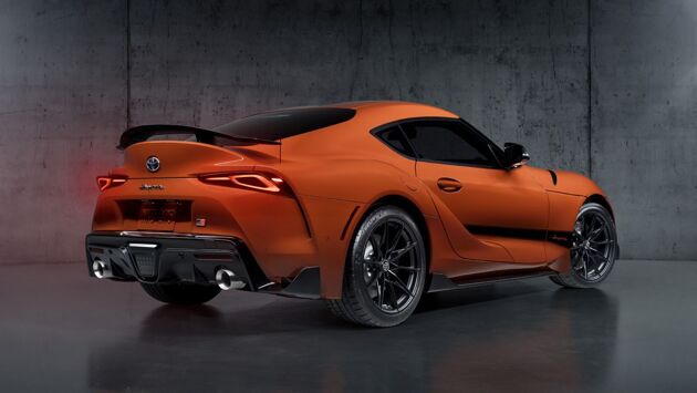 Toyota Supra текущего поколения поступила в продажу в 2020 году, и поэтому Toyota пропустила 40-летие первого поколения Celica Supra, появившегося в 1979 году. Новая модель 2024 года выпускается в белом или оранжевом цвете. Большим дополнением является регулируемое вручную заднее крыло, которое может переключаться между разными углами. Матово-черные 19-дюймовые колеса, черная графика сбоку, оранжевые распорки стоек и логотипы GR на тормозных суппортах - особенности экстерьера модели.