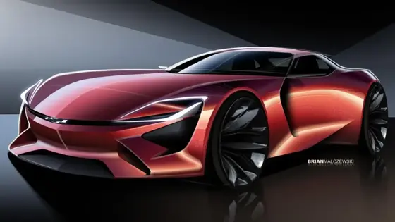 В скетче мы видим спортивный автомобиль классических пропорций — капот с низкой посадкой, небольшая площадь остекления и максимально отведенная назад кабина, чтобы обеспечить распределение веса 50/50. Не исключено, что перед нами будущий Chevrolet Camaro, классическая версия которого после 2024 модельного года будет снята с производства.