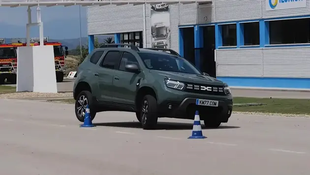 Аодителю удалось обойти конусы, не задев их, на скорости 71 км/ч, что не очень впечатляет. На более высоких скоростях подвеска Duster слишком сильно подпрыгивала и мешала водителю держать внедорожник под контролем.