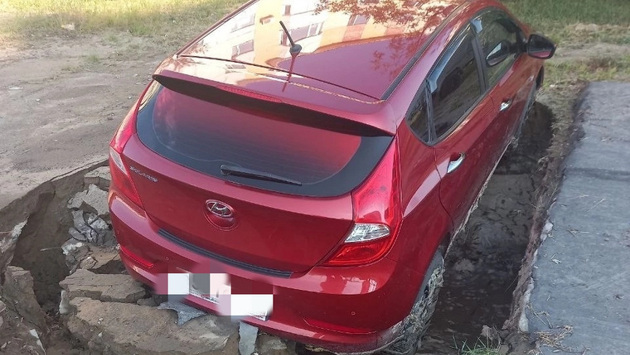 «Чья? Спасайте», — написал автор поста, размещенного в группе «ЧП ДТП Новый Уренгой» в социальной сети «ВКонтакте». На фото, размещенных под постом, видно, что автомобиль был припаркован и асфальт под ней провалился внезапно.