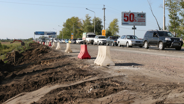 В Кургане строительство пункта весового контроля привело к пробкам на шоссе