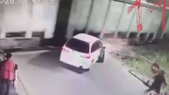 На кадрах видно, как к машине, которой преградил дорогу проходящий состав, приближается полицейский. В то время, когда он попытался открыть пассажирскую дверь, водитель начал движение и уперся в движущиеся вагоны. Машину тут же помяло, протащило несколько метров и отбросило в кювет. Водителя задержали. Сообщается, что он пытался скрыться от инспекторов, которые попросили показать документы.
