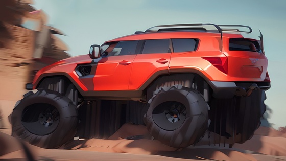 Не исключено, что изображения сгенерированы нейросетью - на такое предположение наталкивает не совсем правильная геометрия колёс, а также форма логотипа. Однако это не мешает взять предложенный образ в качестве отправной точки для рестайлинга российского внедорожника.