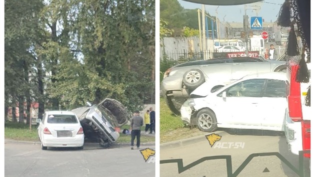 У новосибирского авторынка на Петухова один Nissan «залез» на другой. Фото и видео с места события были опубликованы в Telegram-канале "АСТ-54 Black".