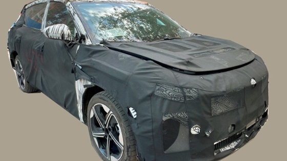 Автомобиль "закован" в плотный камуфляж, сквозь который можно рассмотреть только часть оптики, встроенной по бокам бампера, и нижнюю решётку радиатора. В салоне также ничего не рассмотреть: все особенности интерьера прикрыты пологом.