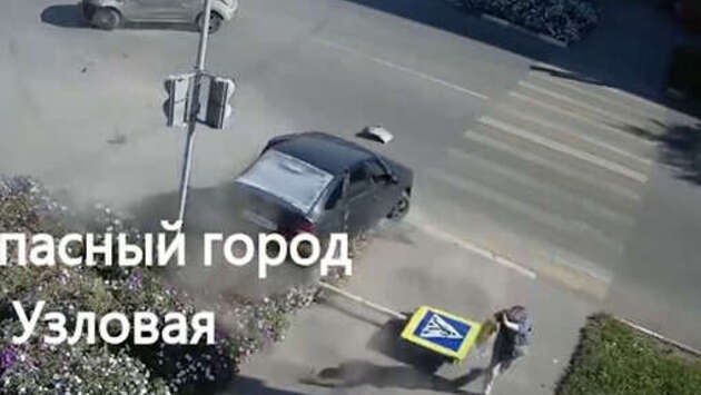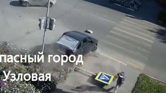 В городе Узловая Тульской области потерявший управление автомобиль врезался в дорожный знак, который упал в нескольких сантиметрах от женщины-пешехода. Об этом сообщает Life со ссылкой на Shot. На кадрах с камеры наблюдения видно, что женщина стояла на тротуаре около пешеходного перехода. В этот момент на перекрестке произошло ДТП: поворачивающий налево Lada XRay врезался в заднее крыло проезжавшей прямо Lada Priora. От удара Priora вылетела с дороги и в заносе задела столб с дорожным знаком "Пешеходный переход". Снесенный знак упал на дорогу в нескольких сантиметрах от женщины, она смогла отскочить в сторону и избежать травм. По предварительным данным, водители обоих автомобилей также не получили серьезных повреждений. До этого в Сарове пассажиры автомобиля избили велосипедиста, который едва не попал под их машину на "зебре".
