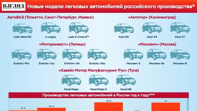 Российский рынок легковых автомобилей радикально изменился за последние годы. Звучали прогнозы, что уход западных автомобильных марок вообще лишит россиян возможности купить собственный автомобиль. Однако реальность оказалась совсем иной: только в этом году в России началось производство целой гаммы автомашин. Каких и где - в инфографике газеты ВЗГЛЯД.