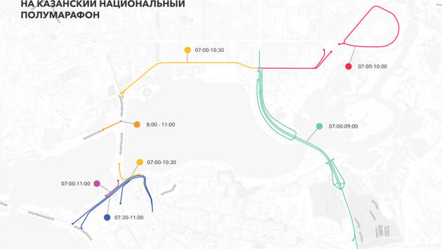 В это воскресенье, 1 октября, в Казани снова будут перекрывать дороги. Причина как всегда спортивная — национальный полумарафон.Что и когда перекроют Схема: пресс-служба Timerman 7:00-9:00 Вишневского — от Ершова до Миллениума. Подлужная — от дома №67 до Миллениума. Амирхана — от въезда в тоннель до Миллениум. Миллениум и автодорога под ним. 7:00-10:00 Сибгата Хакима — от «Ривьеры» до «Ак Барс Арены» (разрешены сквозные проезды с Козина и Нигматуллина). 7:00-10:30 Сибгата Хакима — от Амирхана до Декабристов. Подъем с Батурина на Кремлевскую дамбу. 7:00-11:00 Съезд с Кремлевской дамбы к Кремлевской набережной. 7:30-11:00 Кремлевская набережная — от Батурина до Саид-Галеева. Батурина — от Карла Маркса до Кремлевской набережной. Съезд по направлению от площади Тысячелетия до Батурина. 8:00-11:00 Пролетарская.