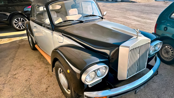 Продукт странного тюнинга с «Духом экстаза» на капоте выставили на продажу в Пало-дель-Колле. Судя по всему, автомобиль построили на базе кабриолета Super Beetle 1972 года от ателье Karmann. Самоделку, которая, по задумке создателей, должна напоминать роскошный британский автомобиль, оценили в 9500 евро — чуть меньше миллиона рублей по сегодняшнему курсу.