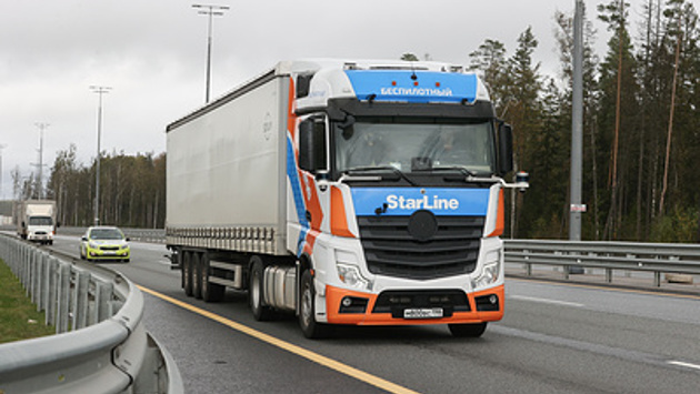 САНКТ-ПЕТЕРБУРГ, 4 октября. /ТАСС/. Испытания беспилотного тягача StarLine провели на трассе М-11 "Нева" во время шторма. По действующим законам, в кабине беспилотного автомобиля присутствовал водитель-испытатель для контроля движения, передает корреспондент ТАСС.