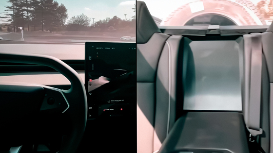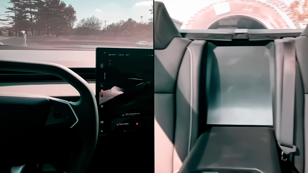 На кадрах виден крупный сенсорный дисплей мультимедийной системы с измененным интерфейсом, правая часть которого отдана под навигатор. Слева показана ключевая информация об автомобиле, включая уровень заряда аккумулятора и различные уведомления об электроники. Tesla пересмотрела дизайн иконок и добавила эффект размытия между сторонами экрана.