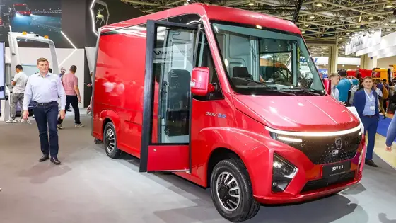 Из легкой техники ГАЗ привез на Комтранс несколько интересных машин – в частности, «скорую помощь» на базе ГАЗели NN заводского производства с задней пневмоподвеской и прототип электрофургона для служб доставки SDV 3.5.