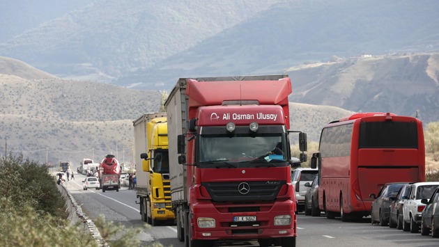 Движение большегрузного транспорта по дороге было запрещено с 22:50 10 октября из-за сложных погодных условий на территории Грузии.