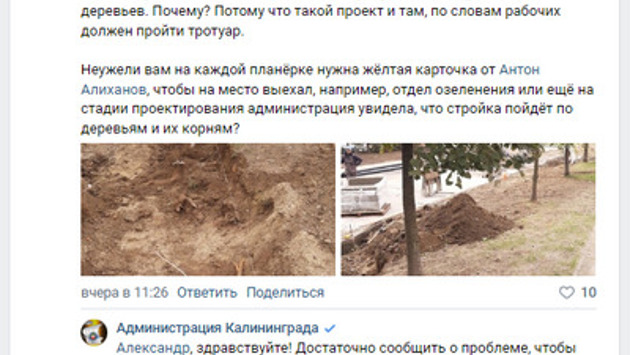 В администрации ответили, что уже связались с заказчиком. На место должны выехать специалисты отдела озеленения, которые проведут проверку и при необходимости составят акт.