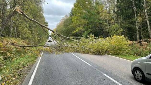 На Куршской косе дерево рухнуло на дорогу и перекрыло движение автомобилям (фото)