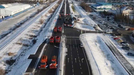 В Новом Уренгое открыли движение по Магистральной парадом спецтехники. ВИДЕО