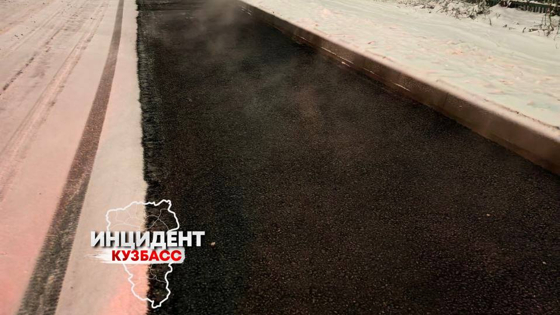Кемеровчанка в Сети пожаловалась на то, что работу по укладке асфальта на улице Гагарина производят, когда дорогу уже засыпало снегом.