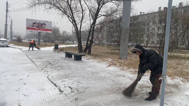 С 22:00 четверга до 5:00 сегодняшнего дня ГСТК заметал и подсыпал противогололёдным материалом городские улицы, включая отдалённые районы.