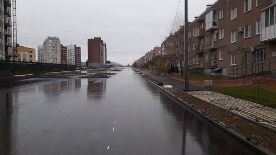 По данным облкомстроя, к настоящему моменту специалисты уже завершили обустройство ливневой канализации, установили бордюры и провели укладку верхнего слоя покрытия из асфальтобетона.