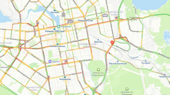 Судя по «Яндекс Карте», город стоит в восьмибалльных пробках. За 15-минутную поездку на такси от главного корпуса Уральского федерального университета до Главпочтамта придется отдать до 430 рублей.