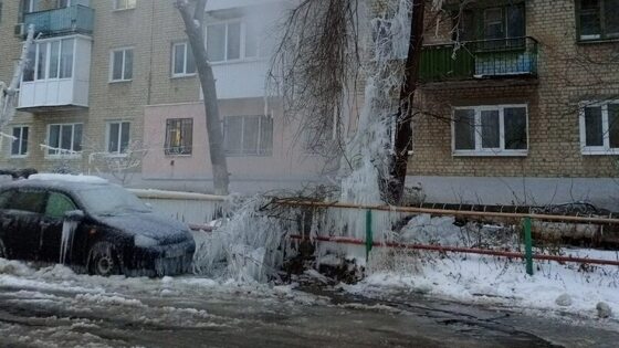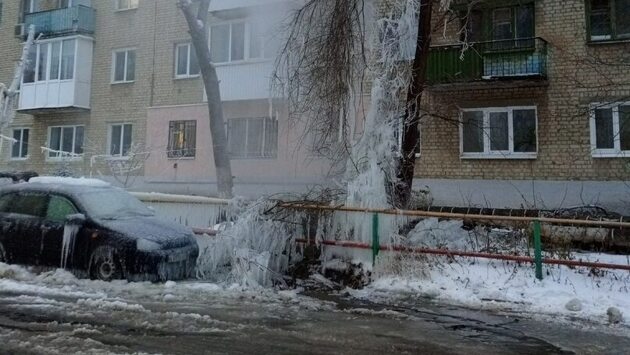 В Саратове коммунальная авария за полчаса превратила автомобиль в ледяную статую