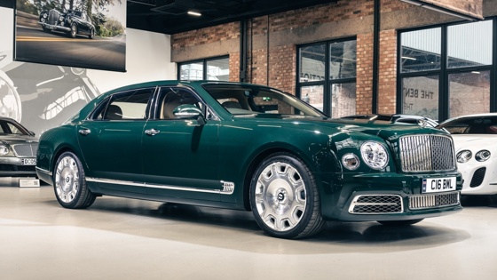 Это последний экземпляр уже снятой с производства модели и третий в коллекции Bentley. Mulsanne Extended Wheelbase был построен в 2020 году по заказу королевского двора. Автомобиль окрашен в зеленый колер Barnato и отличается оформлением салона. Например, только здесь можно увидеть инкрустацию в виде герба Соединённого Королевства и специальный лоток для монаршей сумочки.
