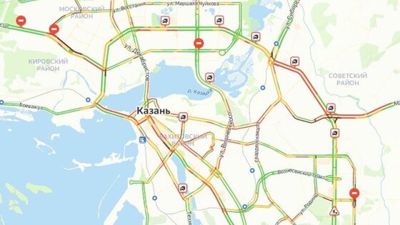 В городе очень много аварий: по одной на ул. Габдуллы Тукая, ул. Бутлерова, ул. Пушкина, ул. Гоголя, ул. Гвардейской, ул. Арбузова, на Мамадышском тракте и на мосту "Миллениум". Две аварии — на просп. Победы, сразу четыре — на просп. Ямашева. Движение на этих участках сильно затруднено.