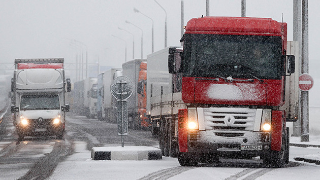 Пробка из фур на границе Литвы с Калининградской областью продолжает расти