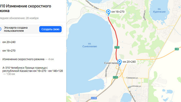«4 декабря на А-310 с км 16 по км 20 будут установлены дорожные знаки „Начало населенного пункта“ и „Конец населенного пункта“. Фотовидеофиксация будет перенастроена на новый порядок движения: со скоростным режимом не более 60 км/ч», — сообщили URA.RU в Упрдоре.