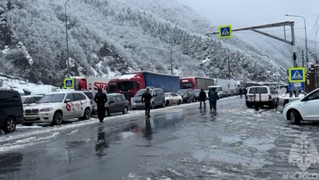 У российской границы идет снег и около нуля градусов. Такая же ситуация на Крестовом перевале в Грузии. Именно непогода стала причиной закрытия межгосударственной дороги.