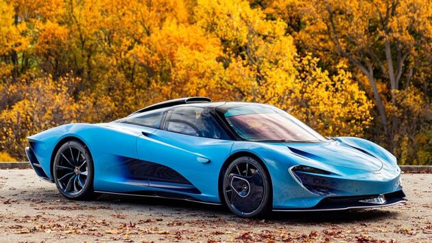 Гибридный McLaren Speedtail был представлен в 2020 году и выпущен серией в 106 экземпляров. Считается, что максимальная скорость 1036-сильного трёхместного купе – 403 км/ч, а до 299 км/ч автомобиль разгоняется за 12,8 секунды. Выставленный на продажу экземпляр также прошёл через серию доработок общей стоимостью $ 670 тыс.
