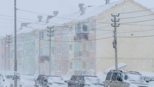 Мощный снежный циклон завладел Сахалином
