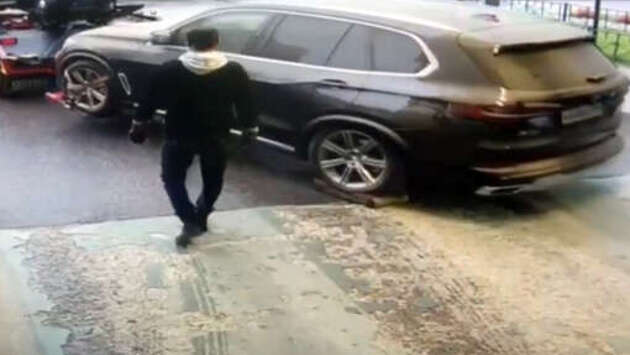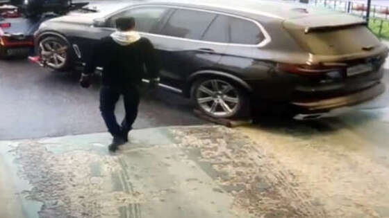 Угон дорогостоящего автомобиля произошел 25 сентября. На записи с камеры наблюдения видно, что BMW X5 из паркинга вывез мужчина в салатовой бейсболке на старинном пикапе-эвакуаторе американского производства. Буксировку при этом контролировали еще двое мужчин, которые шли рядом с прицепленным к стреле эвакуатора BMW.