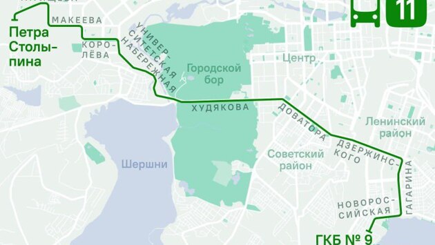 В Челябинске сегодня, четвертого декабря, запустили новый автобусный маршрут по регулируемому тарифу №11 «Петра Столыпина - ГКБ №9». Шесть автобусов среднего класса будут ходить ежедневно каждые 20 минут по улицам Татищева, Комсомольский проспект, Академика Макеева, 250-летия Челябинска, Академика Королева, Университетская Набережная, Худякова, Доватора, Дзержинского, Гагарина, Новороссийская, 5-я Электровозная. Как сообщает телеграм-канал «Челябинский общественный транспорт», первый рейс — в шесть утра, последний – в 21 час 40 минут. Оперативную информацию по маршруту можно получить по телефону предприятия ООО «Автолайн»: +7 351 230-95-57 (диспетчер), +7 351 723-08-86, +7 351 723-08-87.