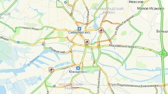 Машины стоят в заторах на основных магистралях города, в том числе на Горького, Нарвской, Железнодорожной, 9 Апреля, Суворова, Невского, Ленинском и Советском проспектах. Сообщается о трёх авариях — на Суворова, 9 Апреля и Ленинском проспекте. Общая дорожная ситуация в Калининграде оценивается в шесть баллов.