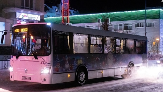 Автобус принадлежит Нарьян-Марскому автотранспортному предприятию. Общественный транспорт украшен новогодними символами, а внутри смонтирована световая иллюминация.