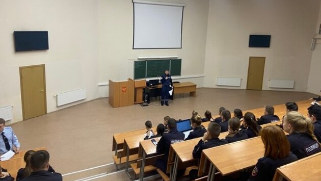 Следующей площадкой для проведения профилактической беседы стал Московский университет МВД России им. В.Я. Кикотя. Сотрудники Госавтоинспекции ознакомили курсантов с показателями аварийности на территории округа и рассказали об основных нарушениях Правил дорожного движения, которые приводят к возникновению дорожно-транспортных происшествий с пострадавшими. Особое внимание молодых людей было обращено на порядок привлечения к административной ответственности за нарушения в области дорожного движения. На протяжении всей встречи ребята с большим интересом слушали дорожных полицейских и задавали волнующие их вопросы.