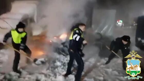 В ночное время в городе Нефтекамске Республики Башкортостан экипаж ДПС в составе лейтенанта полиции Руслана Ахматгалина и стажёра Радмира Мусина, а также сотрудники патрульно-постовой службы полиции сержанты полиции Данил Ибатов и Ильдар Муртазин услышали по рации сообщение о том, что на одной из платных парковок по улице Ленина загорелся автомобиль. Сотрудники полиции как раз находились неподалёку и первыми прибыли на место происшествия, где увидели, что огнём охвачена иномарка. Взяв у охранника стоянки лопаты, стражи правопорядка принялись закидывать машину снегом. Благодаря их действиям до приезда пожарного экипажа удалось частично потушить огонь и снизить последствия возгорания, которое, по предварительным данным, началось из-за неисправности электропроводки.