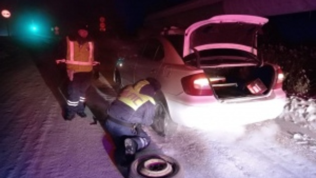 В морозный вечер 23 декабря около 23 часов 30 минут экипаж ДПС в составе старшего лейтенанта полиции Туласынова Айала и старшего сержанта полиции Михайлова Валерия, следуя по маршруту патрулирования, заметили около зимней переправы Хатассы - Павловск автомобиль марки «Тойота Премио», которая стояла со включенными аварийными сигналами. Выяснилось, что женщина не могла продолжить путь из-за того, что заднее колесо автомобиля спустило, а запасного колеса и инструментов при себе не имела. Автоледи направлялась в сторону Якутска, в салоне иномарки еще находилась девушка-пассажир. Оценив ситуацию, полицейские доехали до ближайшего поселка и отыскали у местных жителей запасное колесо. Вернувшись на место аварийной остановки, инспекторы заменили спущенное колесо. Автоледи поблагодарила стражей правопорядка за оказанную помощь, отметив их внимательность к гражданам в сильные морозы, оказавшимся в трудной ситуации на дороге.