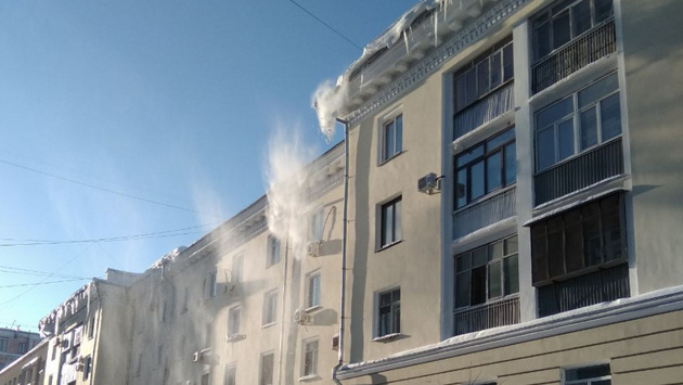 В Челябинске вице-губернатор Шаль проверил, как сбивают сосульки с крыш