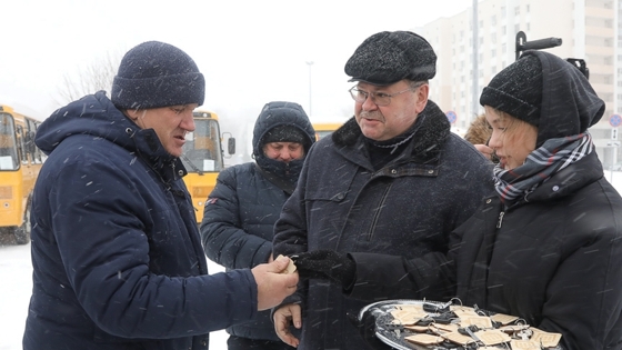 Пенза, 11 января – PenzaNews. Губернатор Пензенской области Олег Мельниченко вручил водителям школьного транспорта ключи от 49 новых автобусов.