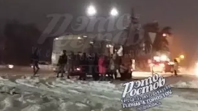 В Ростовской области пассажиры выталкивали автобус из снежного заноса