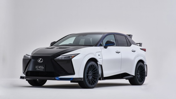 Lexus RZ получил карбоновый капот, новые бамперы с углепластиковыми вставками, накладки на колёсные арки с аэродинамическими винглетами, а также развитые спойлеры и карбоновую крышу. Экстерьер дополнен ярко-синими акцентами и матово-чёрными 21-дюймовыми колёсами Enkei.