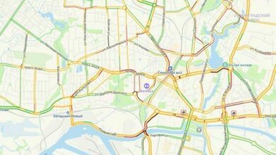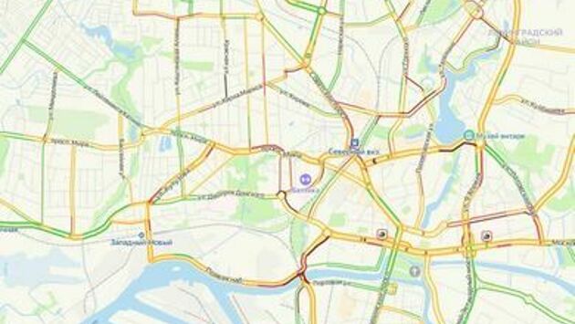 Скользкие дороги стали причиной сразу четырёх ДТП и заторов на Московском проспекте. Ул. Островского и Гайдара окрашены в тёмно-бордовый цвет, там также произошла авария. С минимальной скоростью движется поток по ул. Генерал-лейтенанта Озерова, Фрунзе, Киевской и Советскому проспекту.