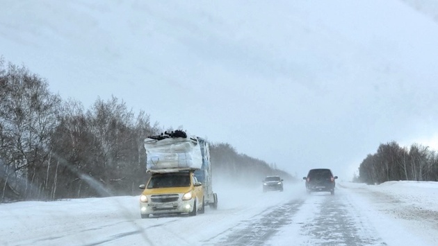 - Очень сильный снег, сносит боковой ветер. Пробка растянулась больше чем на 10 километров, - рассказал корреспонденту "РГ" водитель-дальнобойщик Амир Заманов.
