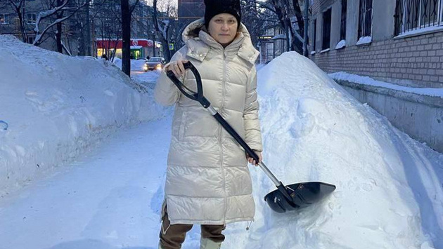 Жена челябинского депутата Госдумы Колесникова с лопатой расчистила подъезд