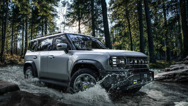 Габариты Jetour T2, внешне похожего на Land Rover Defender, составляют 4785 миллиметра в длину при 2800-миллиметровой колесной базе. При этом объем багажника при сложенных задних сиденьях достигает почти полутора тысяч литров. В список опций кроссовера входят камеры кругового обзора, 15-дюймовый экран мультимедиа с тачскрином, а также система автоматической парковки и адаптивный круиз-контроль.